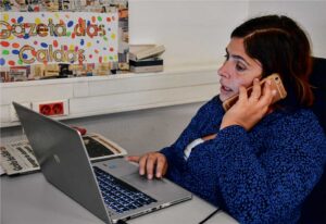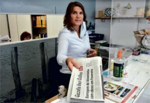 Com um papel menos visível no resultado final do jornal, mas igualmente importante no seu funcionamento, está a secção administrativa e a frente de loja, composto por duas profissionais. Este departamento é responsável pela gestão burocrática e pelo atendimento directo do público, não só dos anunciantes e dos assinantes – importante activo do jornal – mas também da nossa loja, onde se podem adquirir livros e cerâmica de autores locais.
