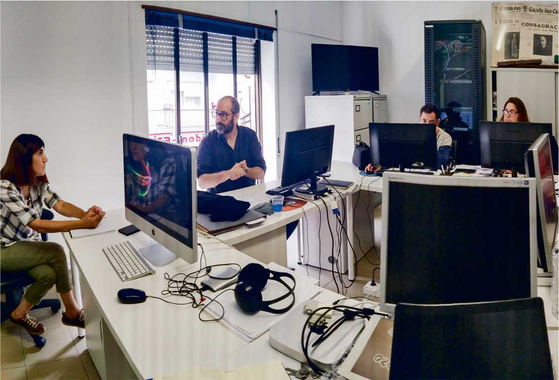 É quarta-feira de manhã e a equipa de jornalistas e gráficos da Gazeta das Caldas está reunida na redação, depois de cumprido com sucesso mais um fecho de edição na noite anterior.