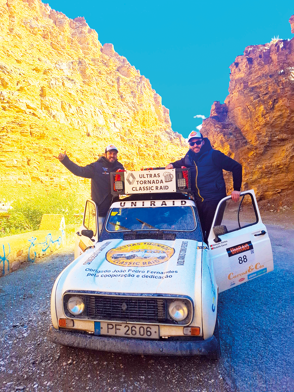 Gonçalo Santos e Rodolfo Daniel são ambos de Tornada, nas Caldas da Rainha, e sempre gostaram de automóveis. O Uniraid é uma forma de fazer solidariedade aliada ao gosto pelas quatro rodas.