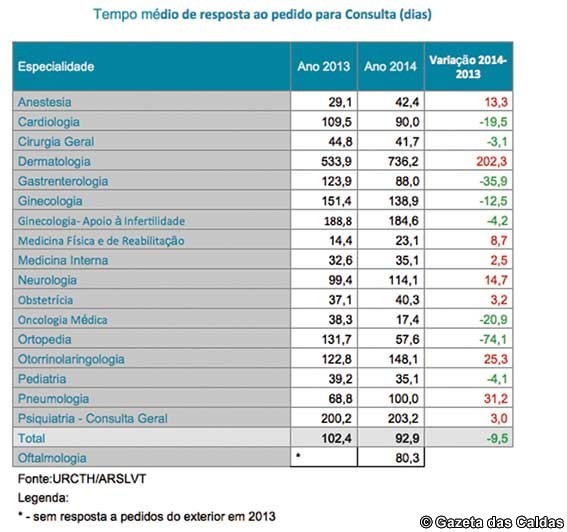 Já a Ortopedia é apresentada como um caso de sucesso pois reduziu-se de 2013 para 2014 o número de dias em lista de espera de 132 para 58.