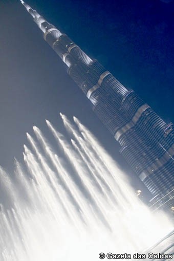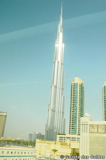 Olhamos abismados os edifícios arrojados, da mais moderna arquitetura, que se erguem orgulhosos na paisagem estéril. O que pareceria inverosímil, arranha-céus lindíssimos, impossíveis, agrupam-se num conjunto harmonioso de cidade futurista. Com hora marcada, de modo a que os bilhetes fossem mais baratos, dirigimo-nos ao mais alto edifício do mundo, Burj Khalifa, com 828m de altura. Parecendo literalmente tocar nas nuvens, ergue-se majestoso em direção ao céu arrancando de nós exclamações genuínas de admiração. Como uma agulha espelhada, reflete a paisagem urbana circundante, anulando com a sua altura as ambições