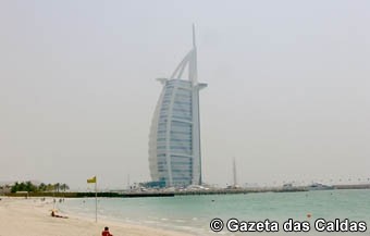 Com olhos no emblemático edifício, retiramos as sandálias para molhar os pés nas águas do golfo e para um desejadíssimo mergulho refrescante. Doce engano, a praia rapidamente se torna insuportável! O calor intenso da praia deserta não é minimamente atenuado pelo caldeirão das suas águas, a uns inimagináveis 32 graus centígrados. Nunca em nenhuma parte do mundo, umas águas de mar são mais quentes do que o duche diário. Saímos extenuados deste banho de imersão, com as forças reduzidas, compreendendo agora a predileção dos habitantes do Dubai por piscinas interiores… climatizadas!