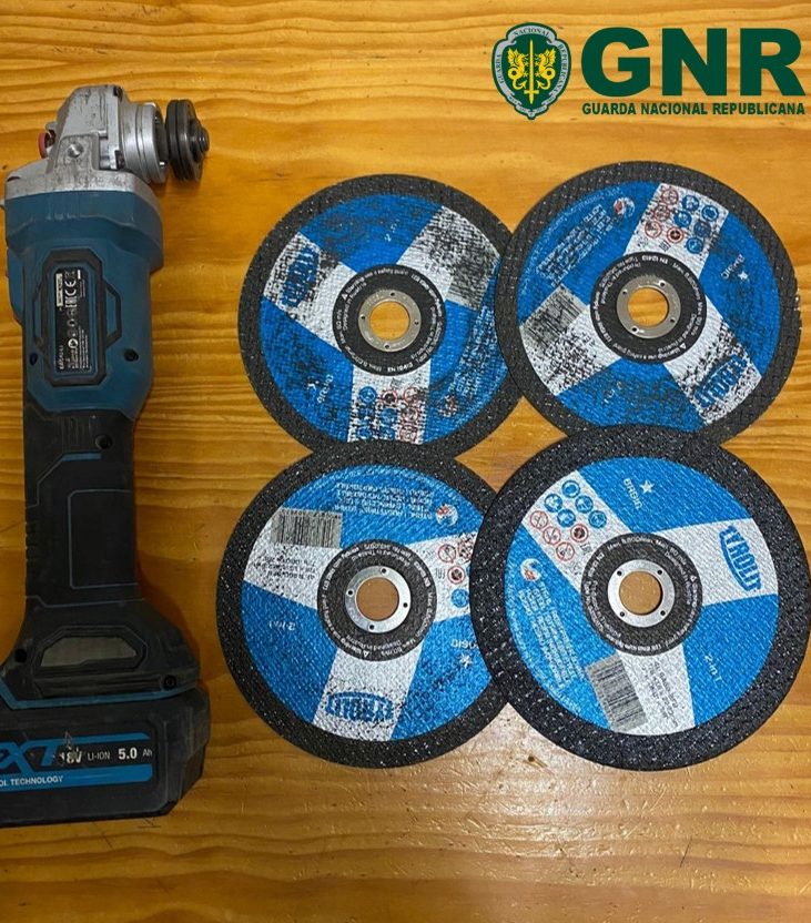 Foi possível apreender diverso material, destacando-se um veículo automóvel, uma rebarbadora e quatro discos de corte.
