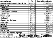 Os campeões das dívidas, segundo o relatório e contas da Águas do Oeste de 31/12/2011, são Alenquer (que deve 5,8 milhões), Alcobaça (4,6 milhões), Nazaré (3,5 milhões) e Azambuja (2,9 milhões).