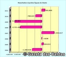 A Águas do Oeste teve em 2011 lucros de 396 mil euros, depois de ter tido consecutivamente resultados negativos desde 2008.