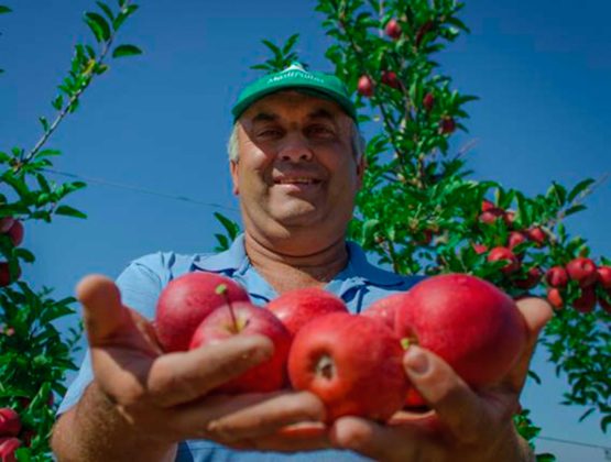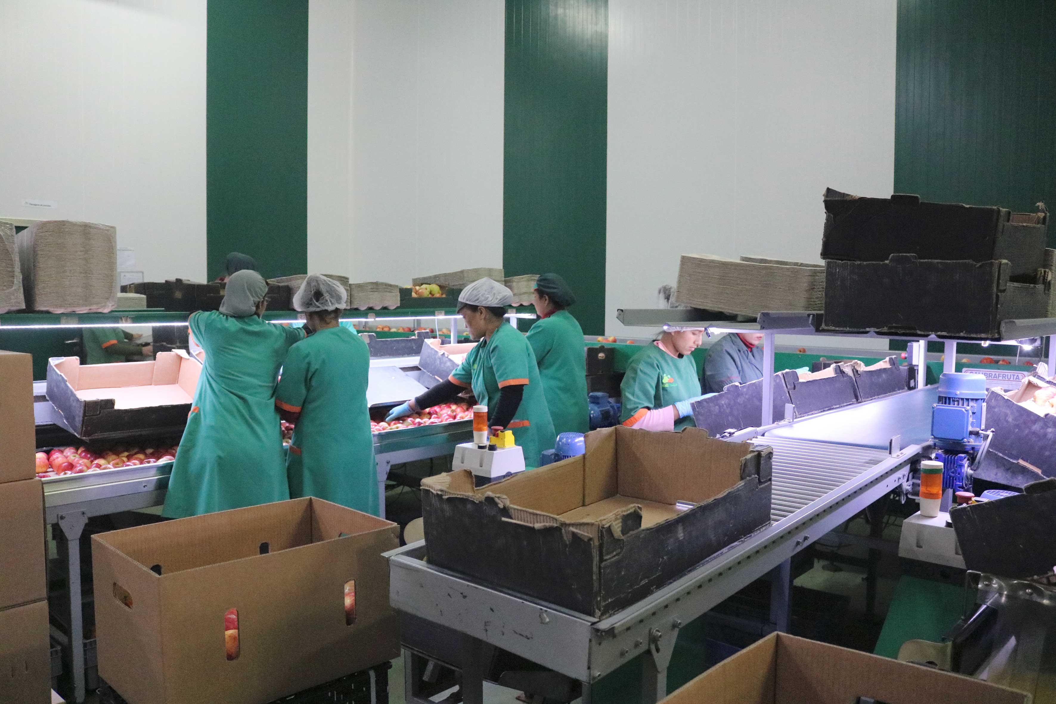 A empresa dedica-se à produção e comercialização de maçãs e pêras e exporta 80% do que produz.