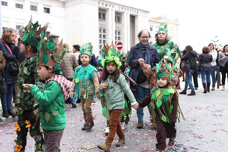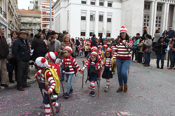 Esta questão dos plásticos e da educação ambiental repetiu-se em algumas escolas, mas no longo desfile houve muito mais para ver. Reis e rainhas, super-heróis, sereias, sapos, pinguins, abelhas, esquilos, mochos e até plantas. Cientistas, palhaços, personagens de contos e de cinema de animação, mas também amas das Caldas e ardinas. E até quem costuma procurar “Onde está o Wally” não tinha problemas em encontrá-lo.