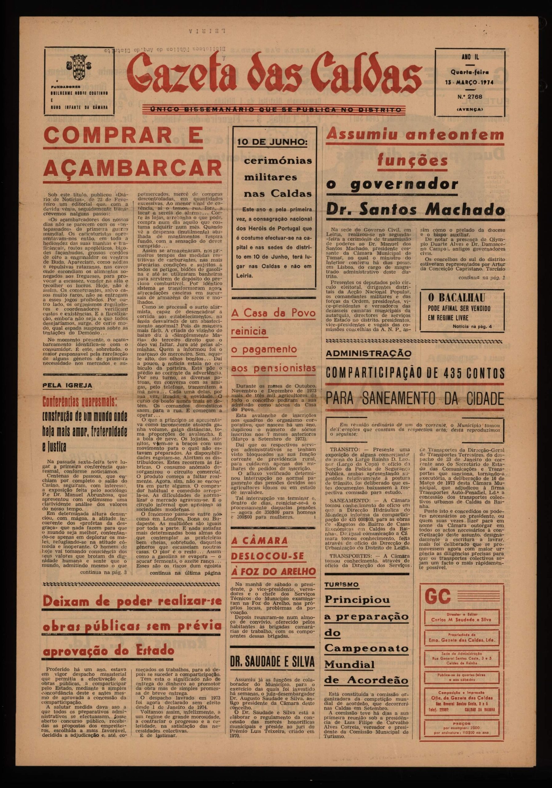 Embora publicado com a data de 16 de março de 1974, a edição da Gazeta das Caldas ainda não trazia, logicamente, nenhuma referência ao Golpe das Caldas que marcou este dia para a História. Essas virão na próxima edição…