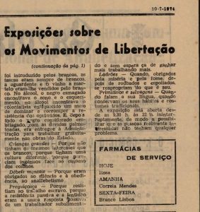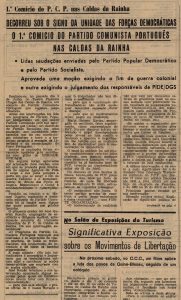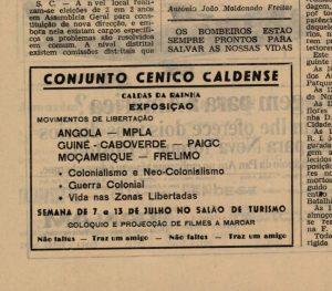 Esta semana destaque na Gazeta das Caldas para uma grande exposição sobre o Movimentos de Libertação na cidade, organizada pelo Conjunto Cénico Caldense. O evento decorreu no Salão de Turismo e na edição do dia 6 temos o anúncio, que termina com: “Não faltes – Traz um amigo”.