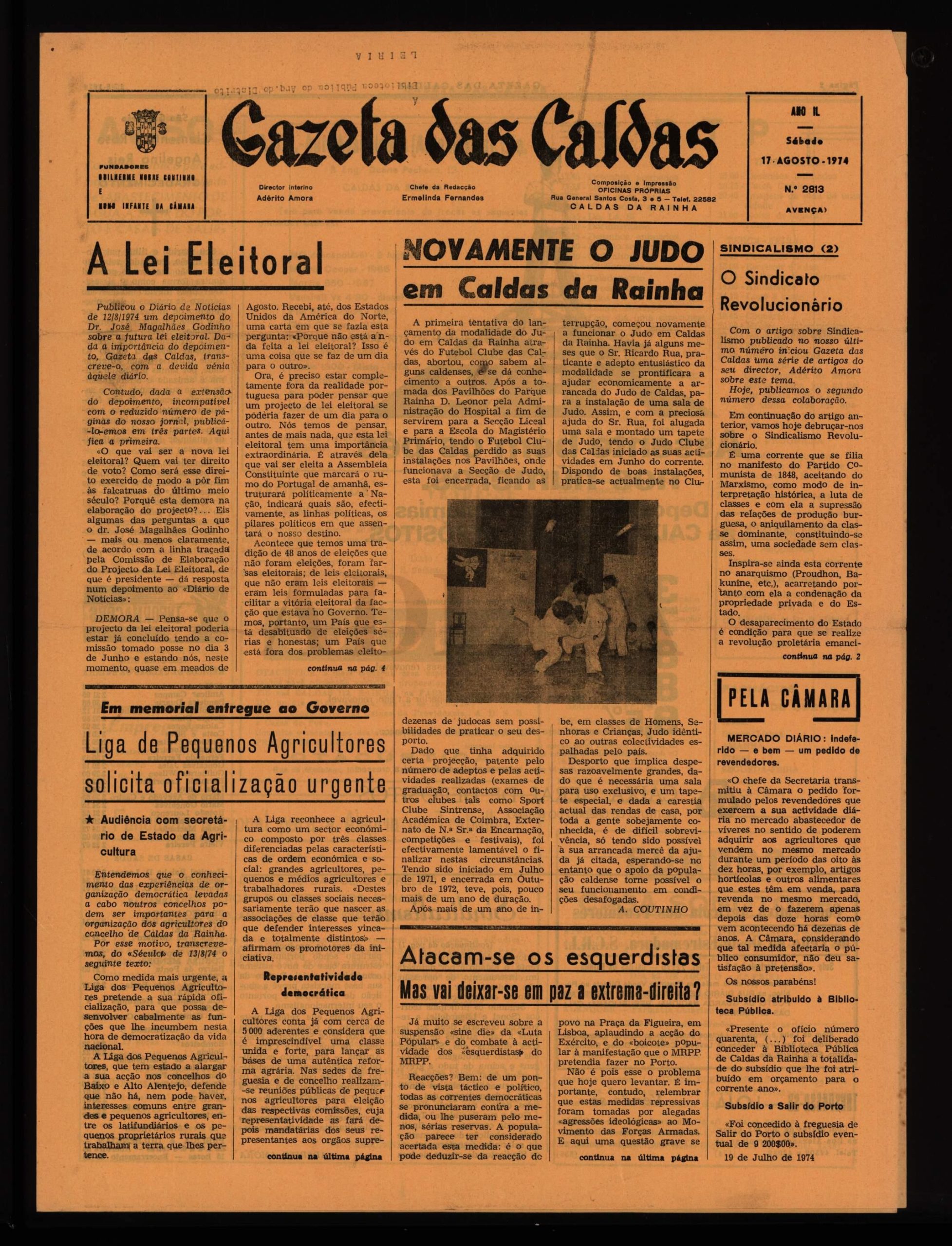 “Novamente o judo em Caldas da Rainha” faz manchete da Gazeta das Caldas, num artigo que recorda que “a primeira tentativa do lançamento da modalidade do Judo em Caldas da Rainha através do Futebol Clube das Caldas, abortou, como sabem alguns caldenses, e se dá conhecimento a outros”.