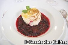 A sobremesa “Geleia de tiramissú em sopa de frutos vermelhos e crocante de licor Beirão”, encerrou o menu com chave de ouro. Para acompanhá-la, o chefe de sala preparou uma pequena surpresa: um cocktail inspirado no clássico Alexander, onde juntou brandy Croft e brandy mel.