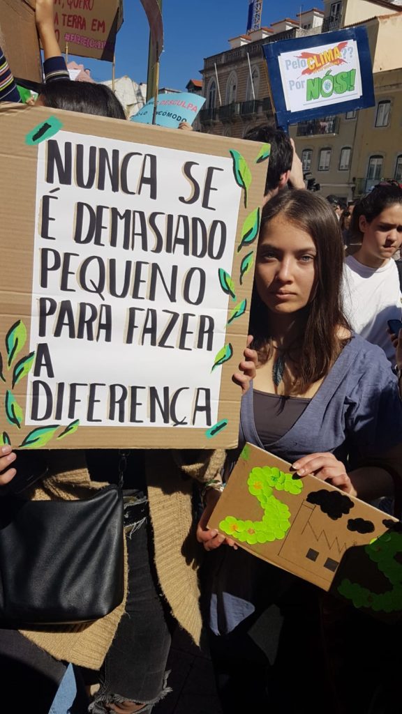 Isabel Vidigal conta que estava a ver a rede social Instagram e descobriu imagens da adolescente sueca Greta Thunberg e ficou impressionada. Teve conhecimento da manifestação, a nível mundial, e pensou que seria “interessante fazer um projecto na escola para todos poderem salvar o planeta”, disse, acrescentando que, juntamente com colegas, fez apresentações por várias turmas para passar a mensagem que “juntos conseguimos e que mesmo sendo pequenos e novos podemos ter um papel importante no planeta”, defendeu.