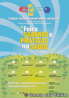 Vai decorrer na Escola Técnica Empresarial do Oeste, nos dias 12 e 13 de Abril, a “Feira Saberes e Práticas na Saúde”, organizada pelos cursos de Técnico de Termalismo e de Técnico Auxiliar de Saúde. O evento irá contar com vários tendas temáticas relacionadas com inaloterapia, termalismo, geriatria, terapias da natureza e tratamento de doenças.