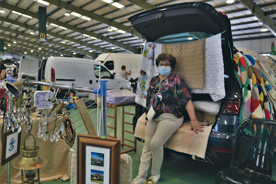 No interior do pavilhão de exposições, os cerca de 10 mil metros quadrados estão ocupados com carros e carrinhas, de bagageira aberta e com as bancas montadas no seguimento das viaturas. Há de tudo um pouco, de móveis a roupas, passando por antiguidades e peças utilitárias e decorativas, entre outras. O evento tinha entrada gratuita e decorria durante todo o dia.