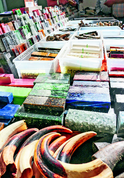 Mas não só de facas se fazia a exposição. Também havia máquinas e materiais. Por exemplo, para construir cabos, a diversidade de materiais – na ordem dos 250 – podia ir desde valiosos dentes de mamute fossilizados (com cerca de dez mil anos), a ossos de girafa e de camelo, cornos de carneiro, madeira com resina que a torna fluorescente, ou ainda outra madeira que muda de cor com a temperatura.