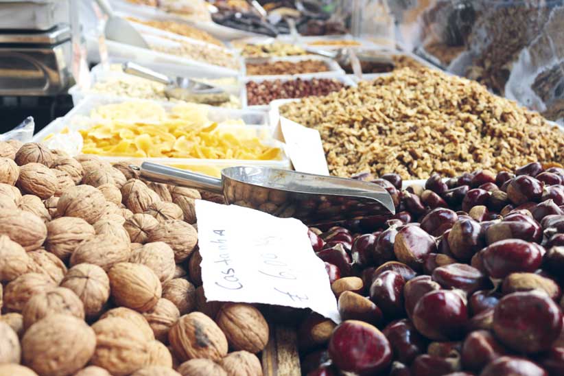 As castanhas, as nozes e os figos são os mais procurados por estes dias, mas nas diferentes bancas há amêndoas e caju, há avelãs e pinhão, entre tantos outros.