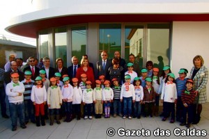 Os alunos da escola básica de Figueiros e a comitiva que esteve presente na inauguração