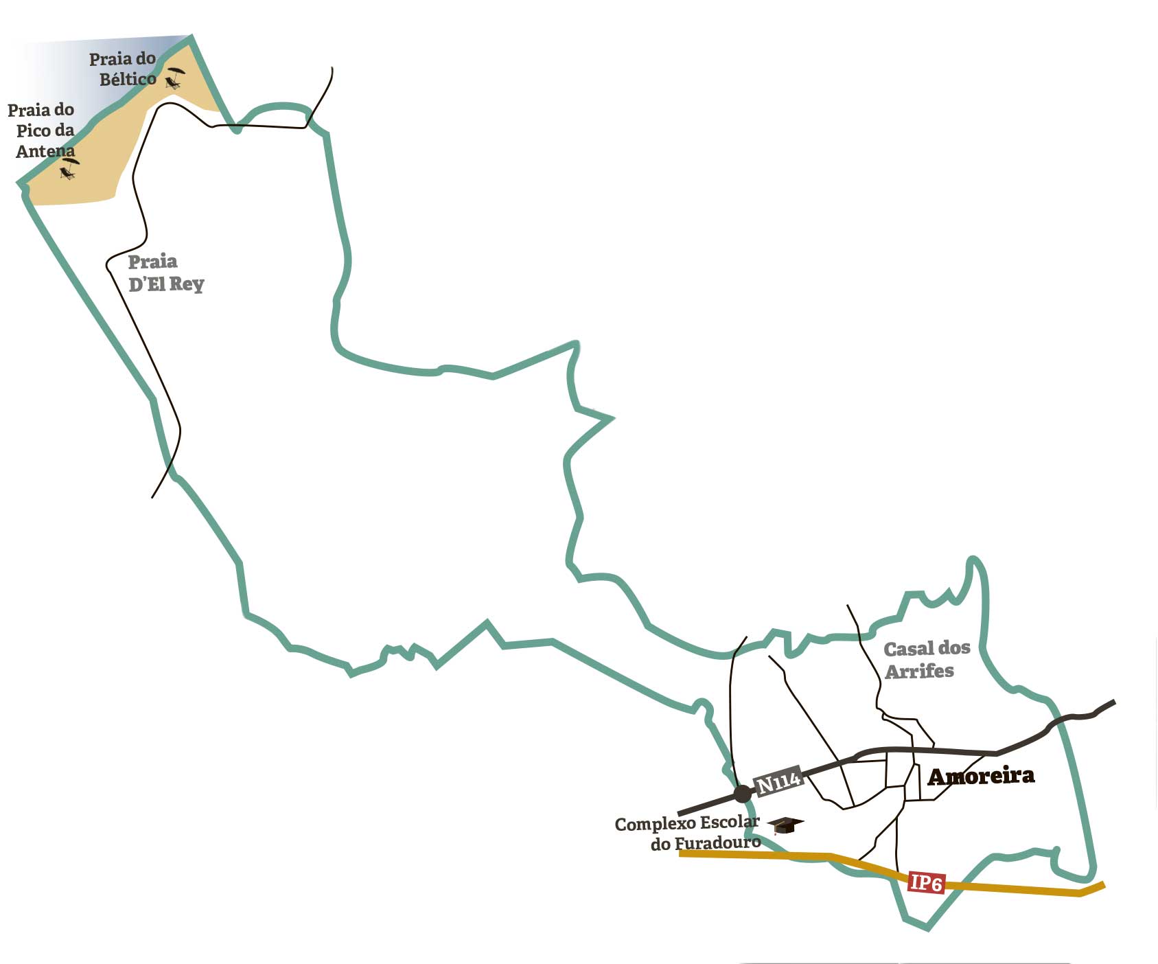Amoreira, Casal do Convento, Casal dos Felícios, Casal do Fevereiro, Casal do Janeiro, Casal de Água, Casal do Vale do Barracão, Moinho Novo, Moinho da Praia