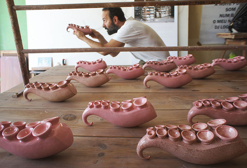A primeira peça que este autor fez para o Ocean foi a adaptação da Nuvem, também em cerâmica, que é usada para levar doces à mesa dos clientes. A experiência correu bem e o caldense acabou por propor este segundo trabalho dos tentáculos de polvo.