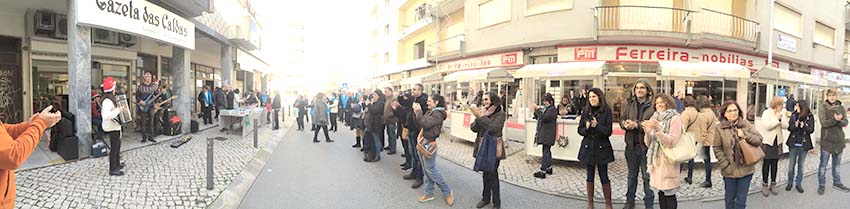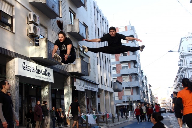 O grupo, orientado por João Franco e Olga Francisco, trouxe a camioneta dos Bombeiros com o material lá dentro. “Foi muito engraçado saltar na Rua Raul Proença. Temos por hábito actuar em pavilhões e ginásios, com outro tipo de enquadramento. Tivemos essa logística, que é sempre engraçada, de preparar o material e colocá-lo aqui”, contou João Franco, acrescentando que “os ginastas antes de começarem a saltar olharam para o equipamento disposto pela rua e disseram: “isto é muito grande”.