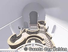 O projecto permite aos visitantes percorrerem toda a igreja rodeados de estantes, que não tocam na parede.