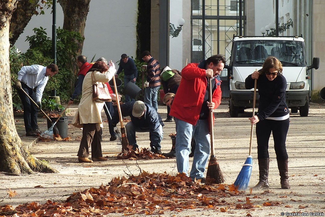 Cerca de 20 caldenses juntaram-se na manhã de domingo passado, 16 de Dezembro, para limpar o chão do Parque D. Carlos I das folhas de plátano que deixaram de ser recolhidas.