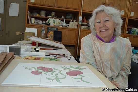 É maravilhoso! Eu não sabia o que esperar mas estou a achar tudo encantador. Gosto de aprender no Cencal e de poder desenvolver os nossos projectos em cerâmica. Eu quis fazer um painel sobre a história da chegada da Rainha às Caldas. Conheci a lenda e a sua cura através das águas termais e quis reproduzi-la nos azulejos.