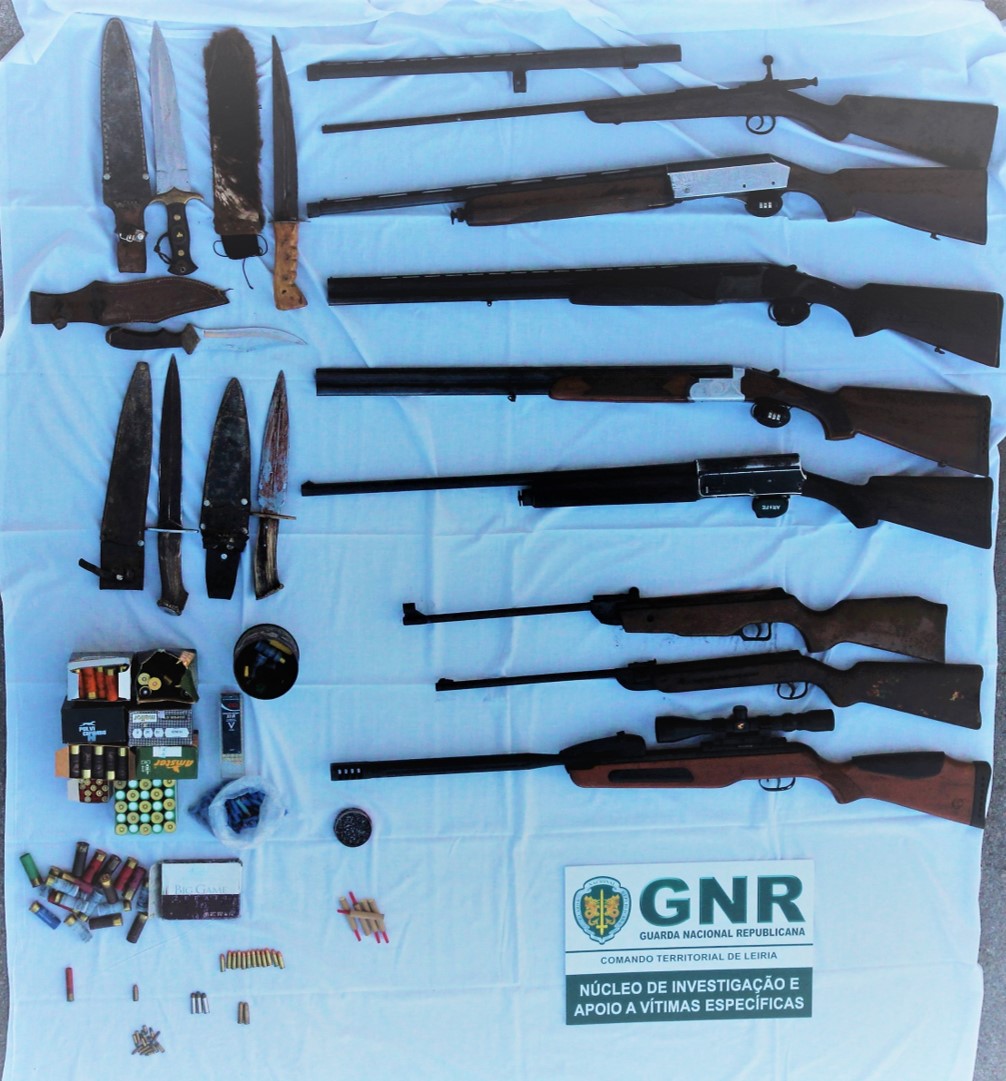Durante as diligências policiais, foi dado cumprimento a um mandado de detenção e a quatro mandados de busca, duas em residência e anexos e duas em veículos, culminando na detenção do suspeito e na apreensão de oito armas de fogo, cinco punhais, diversos cartuchos e munições de vários calibres.