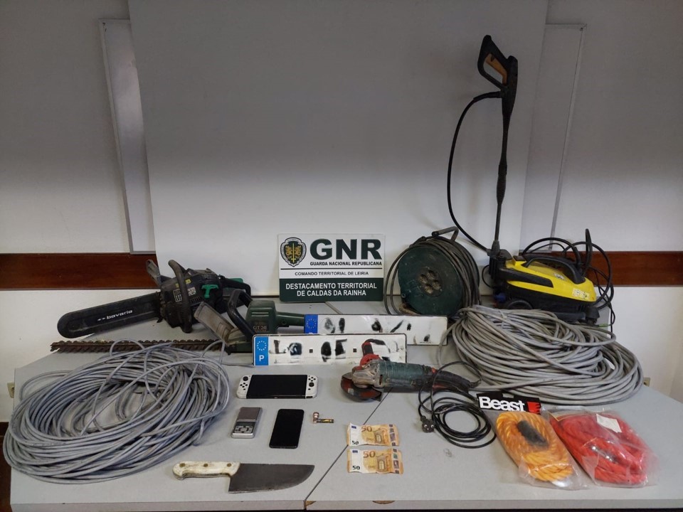 Durante a operação, as autoridades encontraram uma arma branca com dimensões superiores às legalmente permitidas, o que motivou a detenção do suspeito. Foram ainda apreendidos diversos objetos, incluindo duas chapas de matrícula, uma balança de precisão, várias ferramentas elétricas e metros de fio elétrico de cobre, cujo transporte não foi justificado.