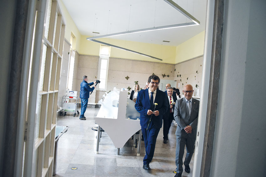 Na visita ao Termal – que inclui a ala Sul, alvo de obras de renovação – foi visitada a exposição “25 de Abril de 74 – Vivências e Memórias”, cujas obras de arte popular são da coleção do major Telmo da Conceição. Esta exposição de artesanato e de arte popular assinalar os 50 anos do 25 de abril, conta com 24 peças de diferentes artistas e que poderá ser vista até 30 de maio, na recém-inaugurada Sala Dr. Mário Gonçalves. Seguiu-se a apresentação da manta “Carta de amor a uma cidade” da autoria de Zélia e de Rafael Évora e que ficará em exposição permanente no Hospital Termal.