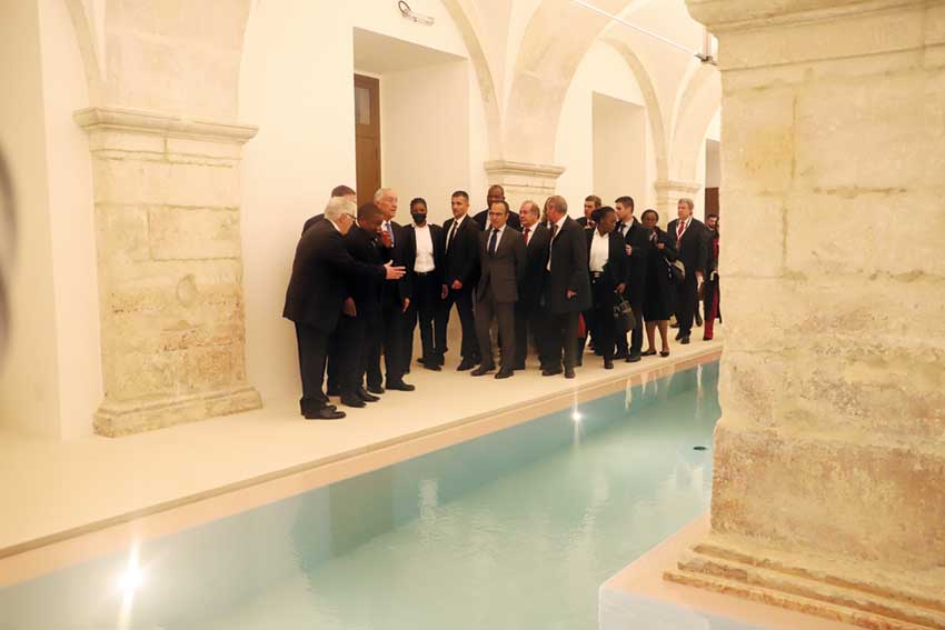 D. Américo de Aguiar, procedeu à bênção do hotel e valorizou a intervenção técnica efetuada num espaço que se mantém fiel aos princípios definidos pelos monges brancos da Ordem de Cister. “Conferiu-nos uma austeridade que nos esmaga”, declarou o bispo auxiliar de Lisboa, enquanto o ministro da Economia e do Mar falou de uma “intervenção feliz”, antes de cometer uma gaffe, ao valorizar a obra no Claustro do… “Ribadouro”. Para António Costa Silva, o projeto de Souto de Moura “revela uma obra-prima única da arquitectura cisterciense” e é um verdadeiro “testemunho em pedra do que foi a história de Portugal” desde o berço da nacionalidade.