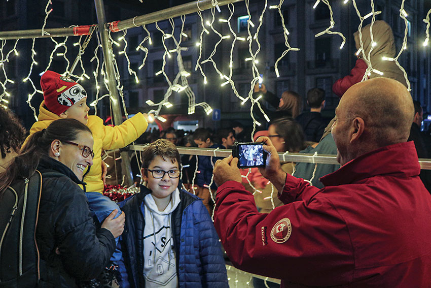 Cerca de uma hora depois da inauguração ainda há gente na praça a captar os primeiros momentos de luz da árvore e muitas outras a circular pela cidade a pé e de automóvel.