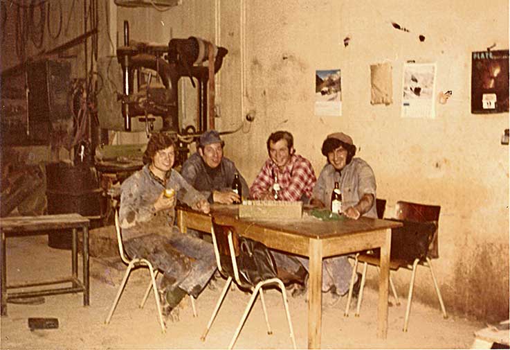 João Diniz com colegas na fábrica onde trabalhou em Sinzig