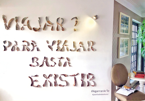 De acordo com Carlos Martinho e Zélia Martinho, proprietários do Josefa d’Óbidos Hotel, “um dos fragmentos do livro biográfico de Fernando Pessoa, com os pensamentos daquele que é um dos maiores autores do século XX, tinha de ser o ponto de partida para a singela instalação artística que pode observar-se na parede do nosso hotel”. E o projeto foi batizado de #AgarrarArTe como resultado “da garra, do entusiasmo, da inspiração e da partilha do tempo da Teresa, da Cecília, do Jorge e do Carlos”, dizem, destacando a forma como conseguiram fundir noções de arte tão diferentes entre si.