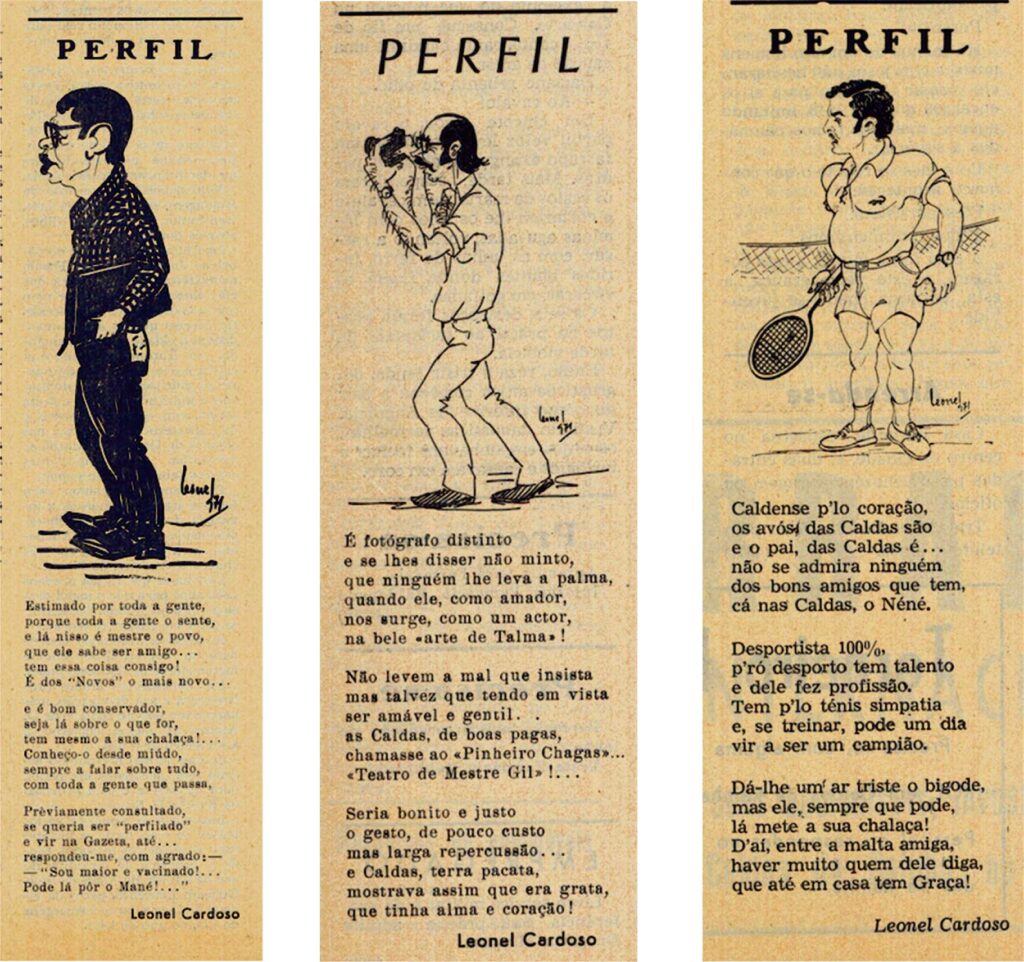 Ao longo de mais de 50 anos o caldense Leonel Cardoso colaborou na Gazeta com textos de opinião, de sociedade, desenhos e poemas, numa infinidade de iniciativas que espantam ainda hoje o leitor pela seu persistência e criatividade.