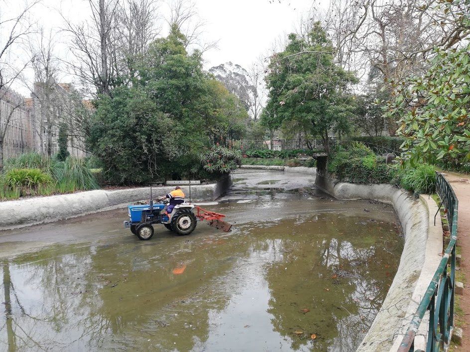 O lago do Parque D. Carlos I está a ser alvo de uma intervenção de limpeza e reparação. Os trabalhos decorrem nos dois primeiros meses do ano e prevêem a reparação de fissuras e de alguns pontos críticos no piso e nas laterais do lago.