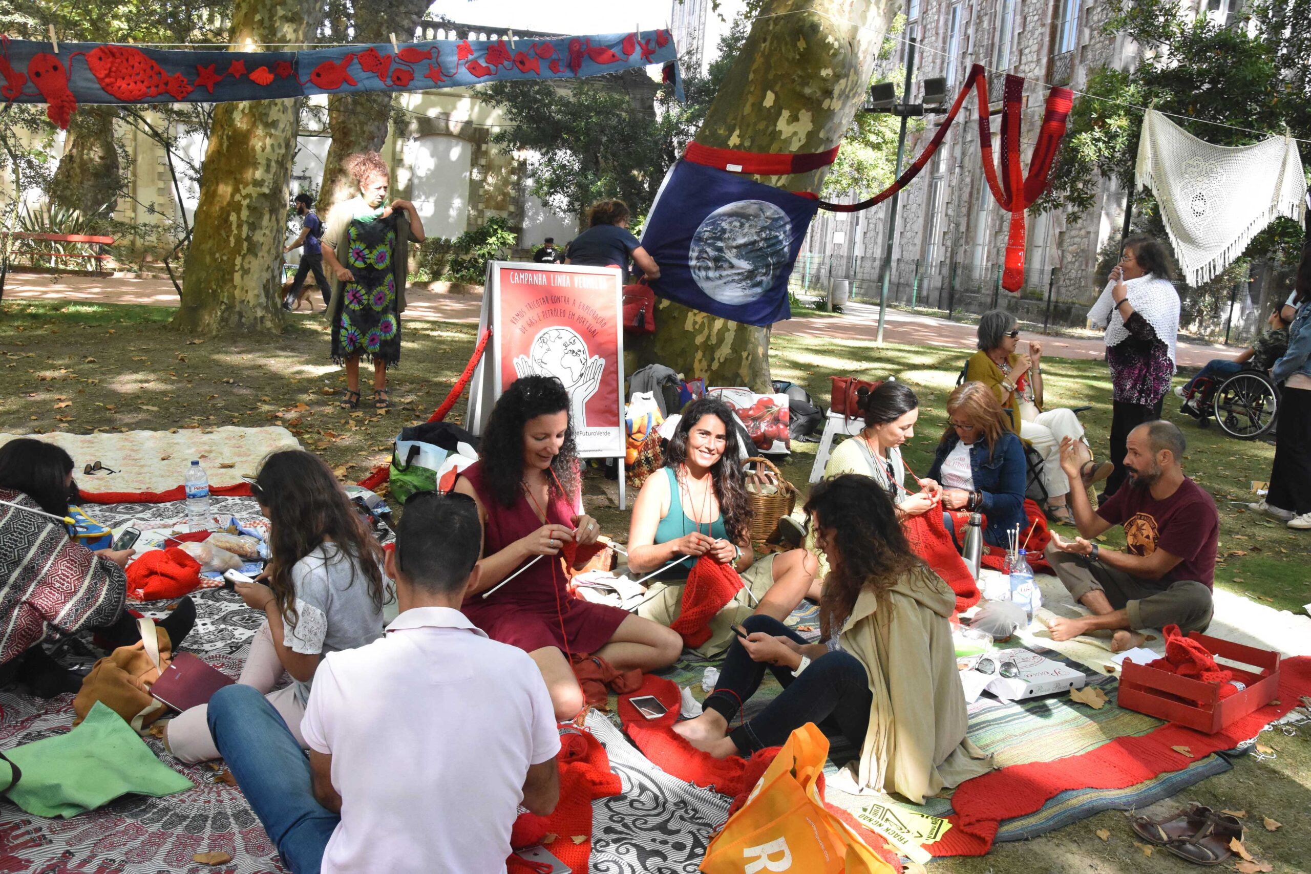 No Parque também se fizeram pontos de contestação. A campanha Linha Vermelha, que alerta contra a prospecção de petróleo e gás, voltou a marcar presença, com a participação também de caldenses a tricotar.