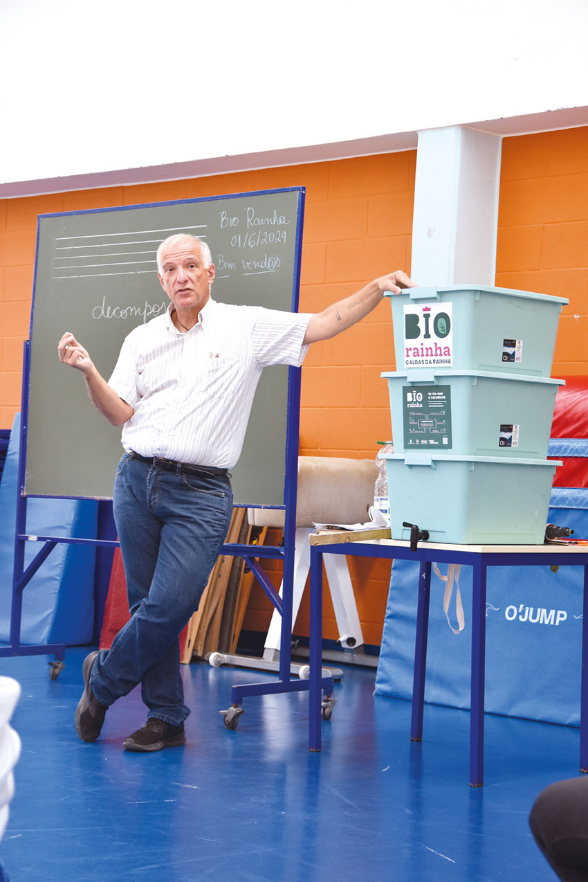 Natural do Brasil, Cláudio Oliver começou a fazer compostagem há cerca de 20 anos e, quando chegou a Portugal, a primeira compra que fez, mesmo ainda antes de ter morada fixa, foi um vermicompostor. “Aquele primeiro compostor ganhou outros iguais e transformou-se em parte de uma central de compostagem”, disse, dando conta que no ano passado transformou mais de 400 quilos de biorresíduos domésticos e 200 quilos de resíduos de poda em “300 quilos de comida”, referindo-se à produção de diversos alimentos com o composto obtido. O ambientalista está também a ajudar a construir a horta regenerativa de Santo Onofre com um conjunto de amigos e de professores.