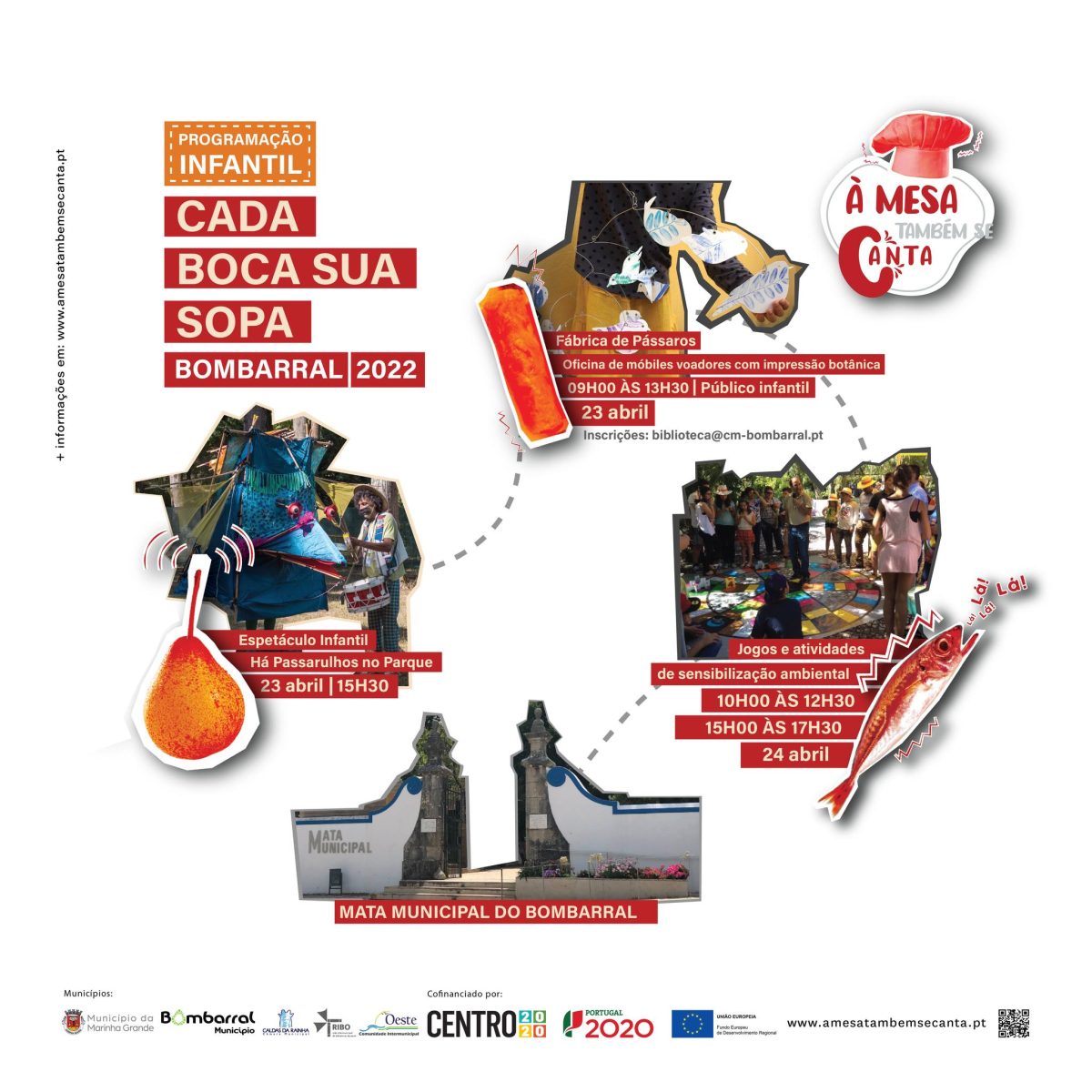 Nos dias 23 e 24 de abril, a Mata Municipal do Bombarral recebe o evento “Cada Boca Sua Sopa”, que conta com diversas atividades dedicadas ao público infantil.