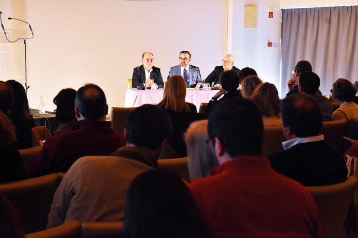 O bastonário da Ordem dos Médicos, Carlos Cortes, na sessão de encerramento, ladeado por António Curado e por Paulo Simões