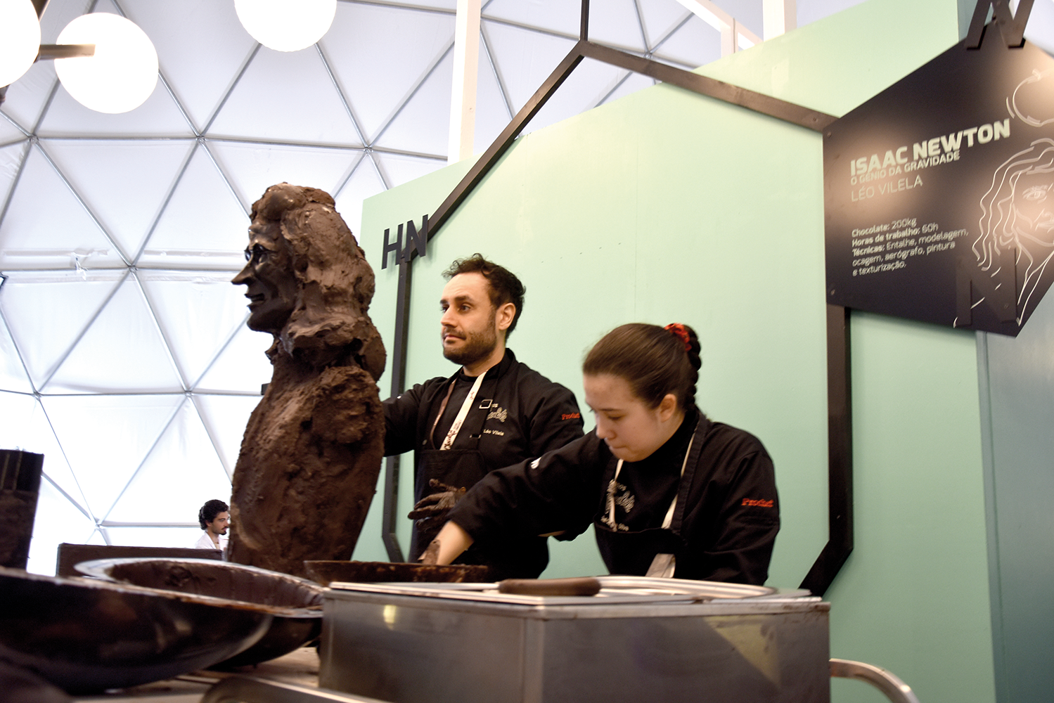 Uma dezena de chefs criou uma tablete gigante de chocolate do Dubai, com 100 quilos, na manhã de sábado