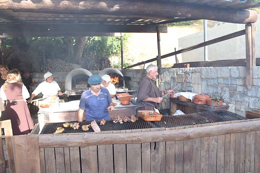 O porco no espeto é a imagem de marca da taverna da Associação de Caçadores, Agricultores e Pescadores de A-dos-Negros, que também se localiza nos socalcos. A acompanhar o porco, há ainda sopa de peixe, moelinhas e caracóis. Ali perto, são os chocos, grelhados e em feijoada, que trazem convivas à Taberna de Nossa Senhora da Piedade, a cargo da Igreja Paroquial do Vau.