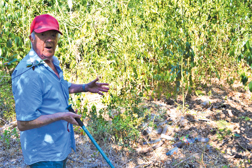 A meio de um desses trabalhos encontrou duas garrafas de plástico, começou a retirá-las com a sua pequena enxada e acabou por encontrar muito mais do que as duas garrafas que lhe tinham chamado a atenção. Eram dezenas de garrafas de plástico, de latas e de copos de plástico que ali estavam enterrados.