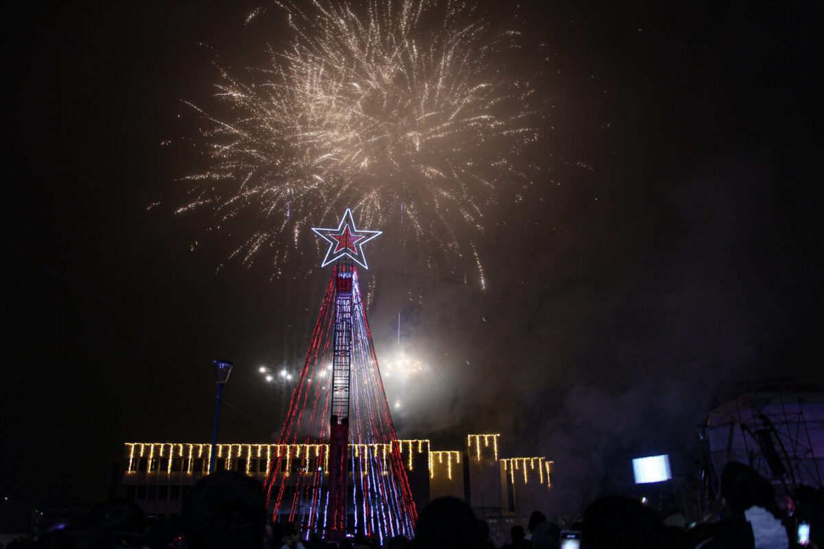 A iniciativa começou com um concerto do caldense Paulo Seixas e teve, depois, como estrela principal o artista Toy, que tratou do entretenimento durante duas horas, com algumas das músicas mais conhecidas do seu reportório, antes de se acender a árvore de Natal gigante, num esquema de luz e som e ao qual não faltou o fogo de artifício.