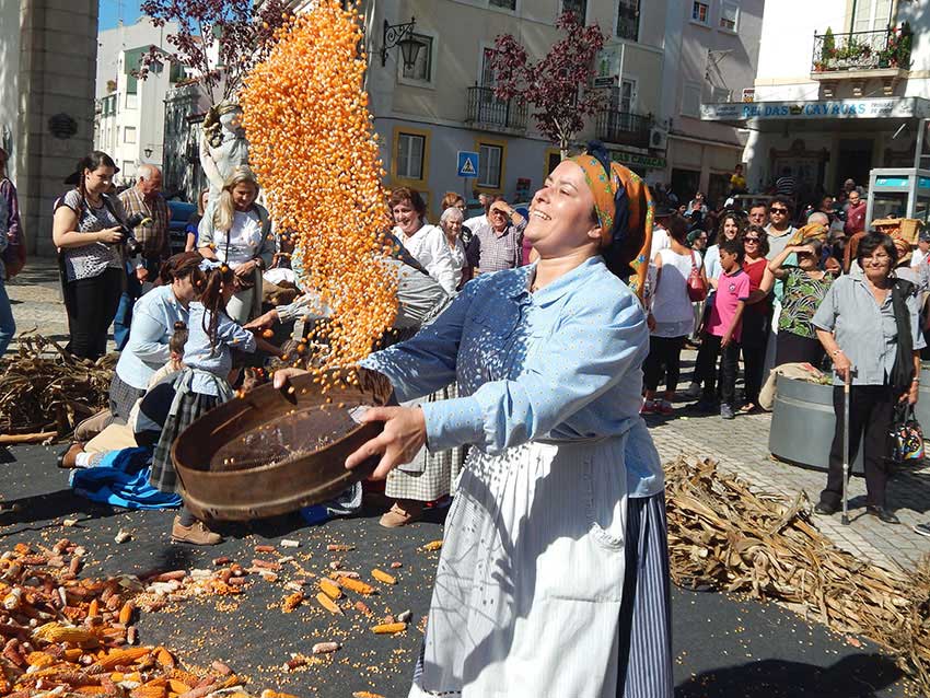 O roteiro prossegue: no topo da Praça da Fruta vários pares dançam o fandango, enquanto no largo do Hospital Termal um grupo de ceifeiros recria a desfolhada e a malhada do milho numa eira improvisada. Vai a manhã a meio e a Rua das Montras (Rua Almirante Cândido dos Reis) transforma-se no palco para duas pequenas performances teatrais em que os intérpretes representam à janela. Pretende-se aqui recriar as “cusquices” de antigamente, numa época em que toda a gente se conhecia nas aldeias e metia o nariz onde não era chamada. “Eu cá não tenho por hábito falar mal de ninguém, mas já viste quem é que está prenha?”, comentam as personagens.