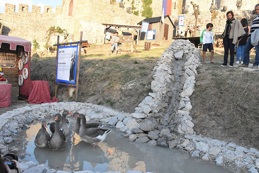 A cerca dos gansos fica situada na Alquimia das Águas, espaço também utilizado por diversos artesãos para mostrar os seus mesteres. Ali é possível encontrar o armeiro, o picheleiro, o malheiro, a tecedeira, a padeira e a curandeira e boticária, algumas das profissões usuais da Idade Média.