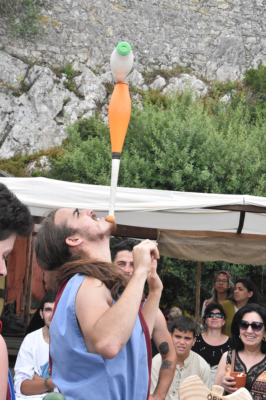 O casal destaca também a afluência de público a estes espectáculos, que decorrem três vezes por dia, durante todo o evento. Contudo, Tiago Castro destaca que em Óbidos o público é muito exigente, o que leva a que eles tenham que aprimorar a técnica. “Temos que dar sempre muito mais do que o nosso melhor” porque as pessoas “querem ver espectáculo”, sublinha. E, ainda que cada apresentação tenha um guião pré-definido, a parte de improviso “é astronómica”, diz o participante que considera essa exigência particularmente motivadora.