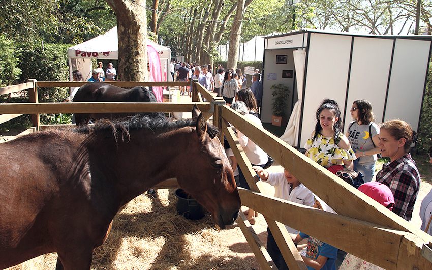 A Avenida dos Plátanos, onde ficam as boxes com os poldros expostos, é sempre dos locais mais concorridos e apesar das placas a pedir para “por favor não tocar nos animais”, é quase impossível resistir a fazer uma festinha aos equídeos, tanto os mais novos como os mais velhos.