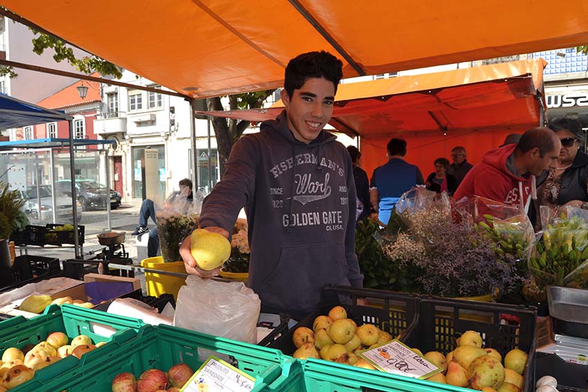 Hugo Roque tem 15 anos e vem ajudar o tio a vender ao fim de semana. Fábio Vilaça, da mesma idade, vem aos sábados ajudar os pais. Ambos são filhos de produtores do concelho de Óbidos mas gostariam de procurar outras profissões.