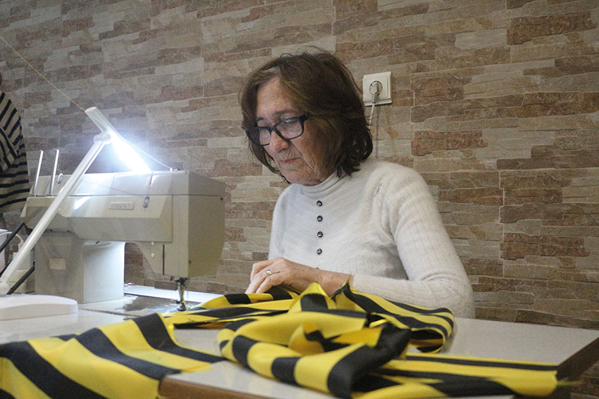 Na outra máquina de costura encontramos a presidente da associação, Cristina Morais, que nos conta que a preparação do Carnaval envolve cerca de 15 pessoas, mas para desfilar já vão com 90 inscritos. Para a preparação “somos sempre os mesmos e cada vez menos”, lamenta, notando que se torna “cada vez mais difícil” dar resposta a este desafio. Também ela costureira industrial, conta que este ano sentiram algumas dificuldades de logística, por exemplo, com a falta de tecidos, que obrigou a parar os trabalhos.